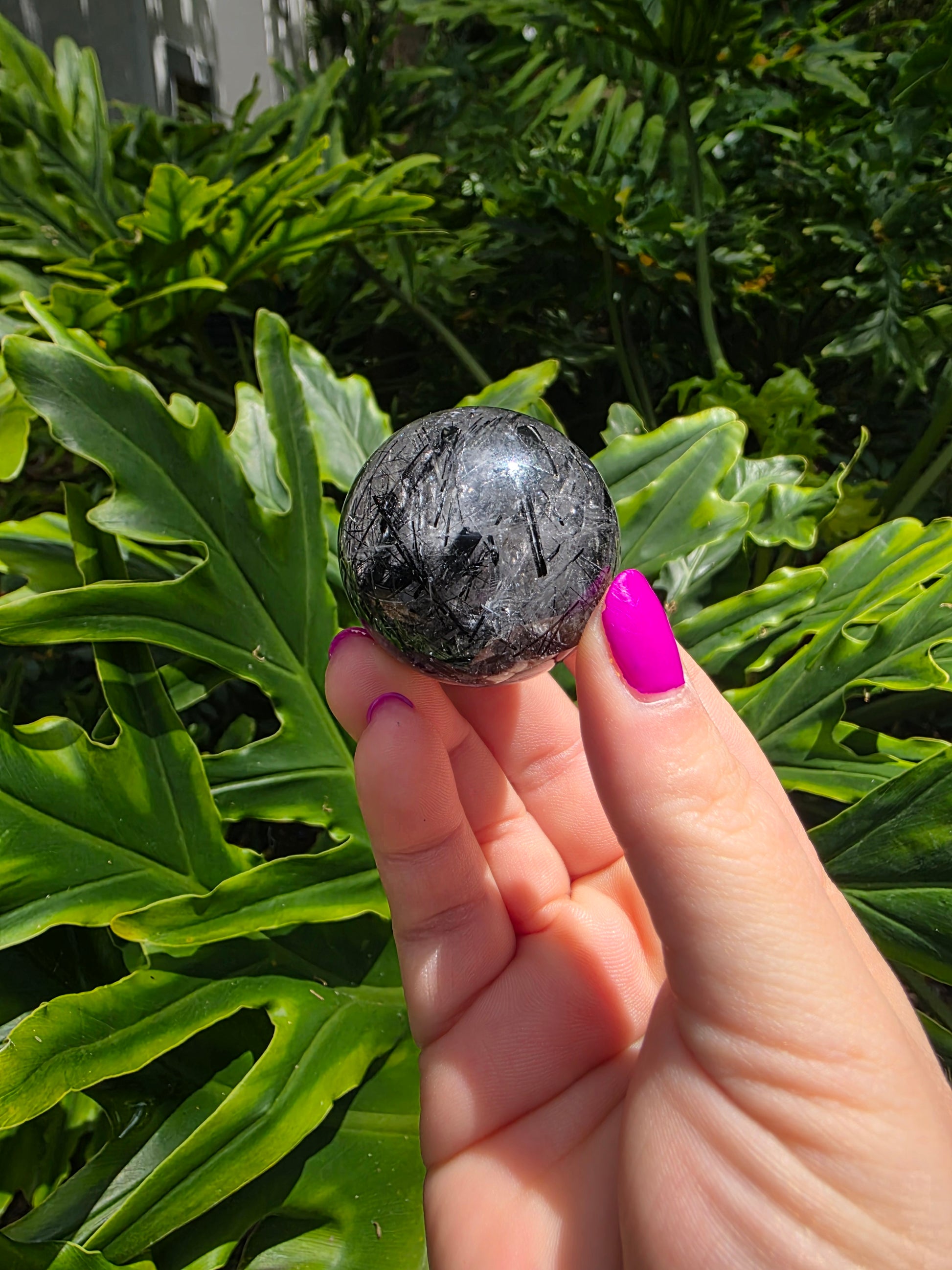 Black Tourmaline Rutilated Quartz Sphere [A]