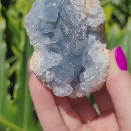 Invite peace and divine connection into your space with our stunning Celestite specimens. Known for its soft, sky-blue hue and gentle energy, Celestite is a high-vibration crystal that encourages clarity, and calmness,.