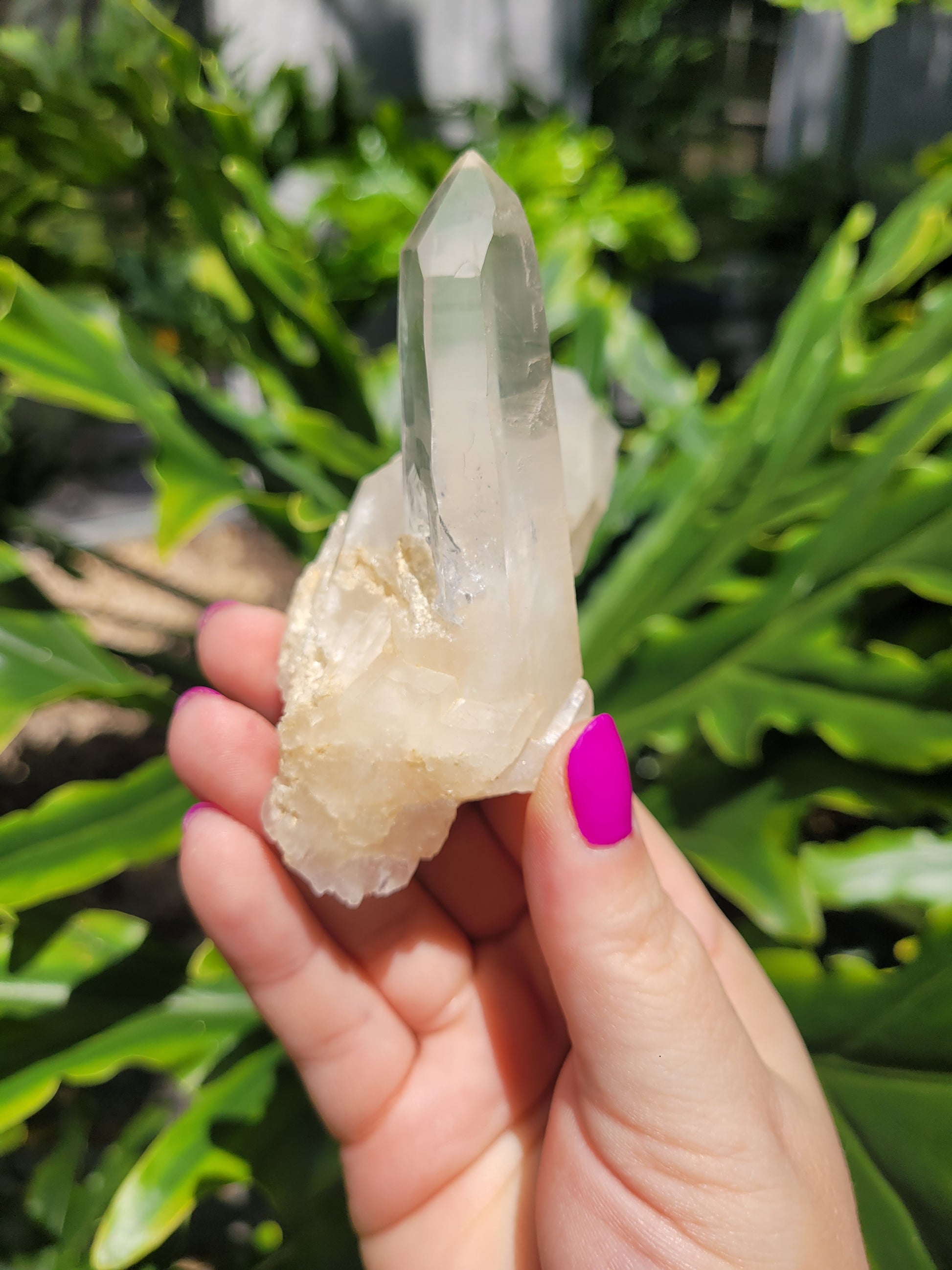 Color: Clear to slightly milky quartz with potential rainbows or inclusions