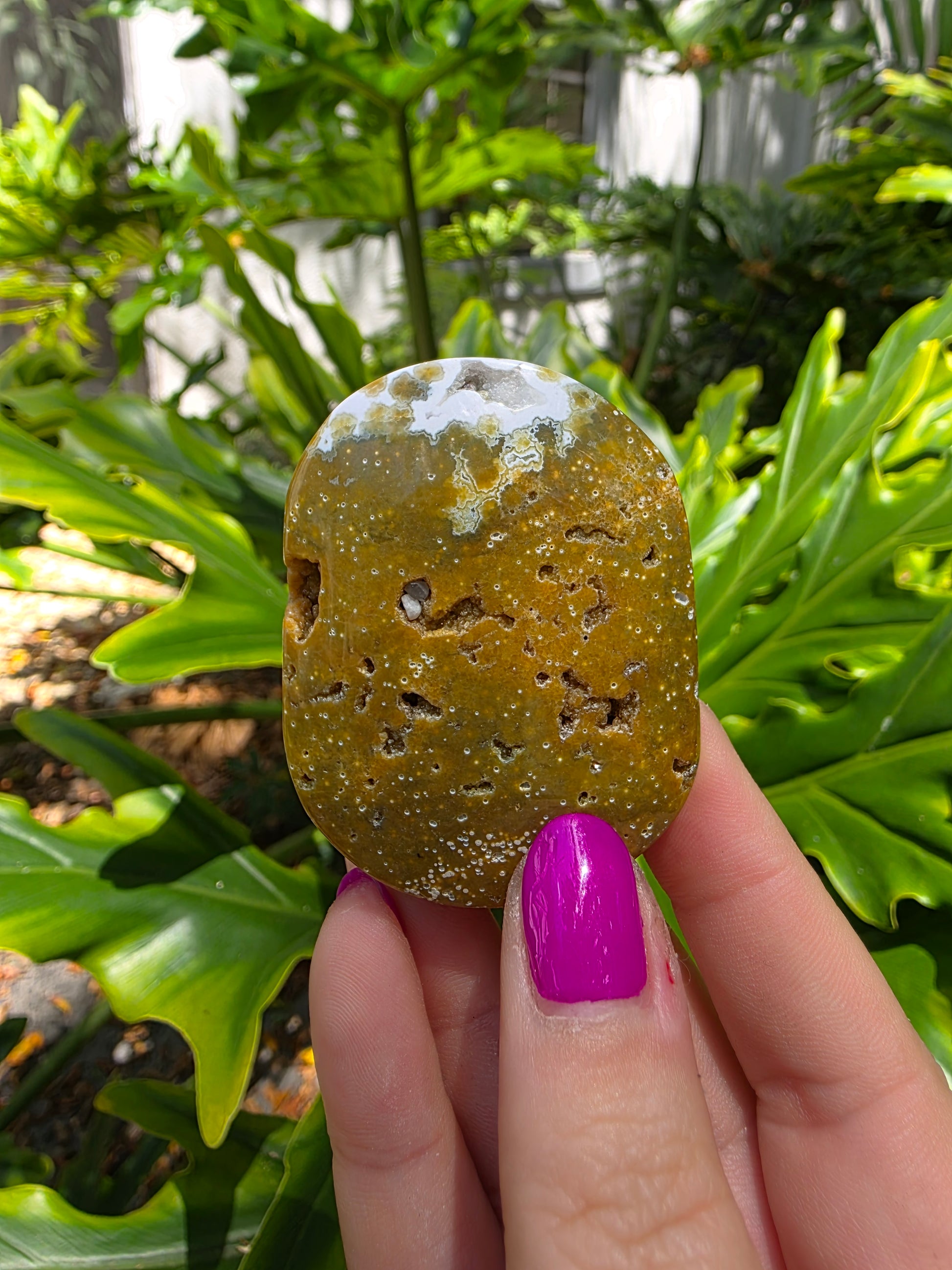 Whether you're a collector, energy healer, or simply drawn to the earth's natural beauty, these Ocean Jasper palm stones are a grounding treasure you’ll love.