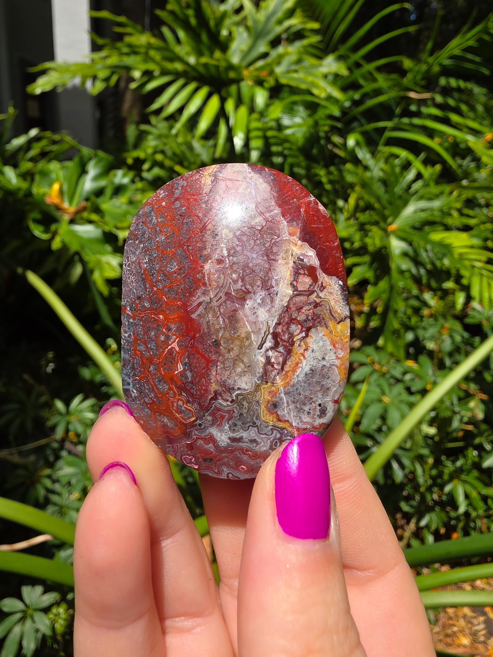 Red Mexican Crazy Lace Agate Palm Stone [HH]