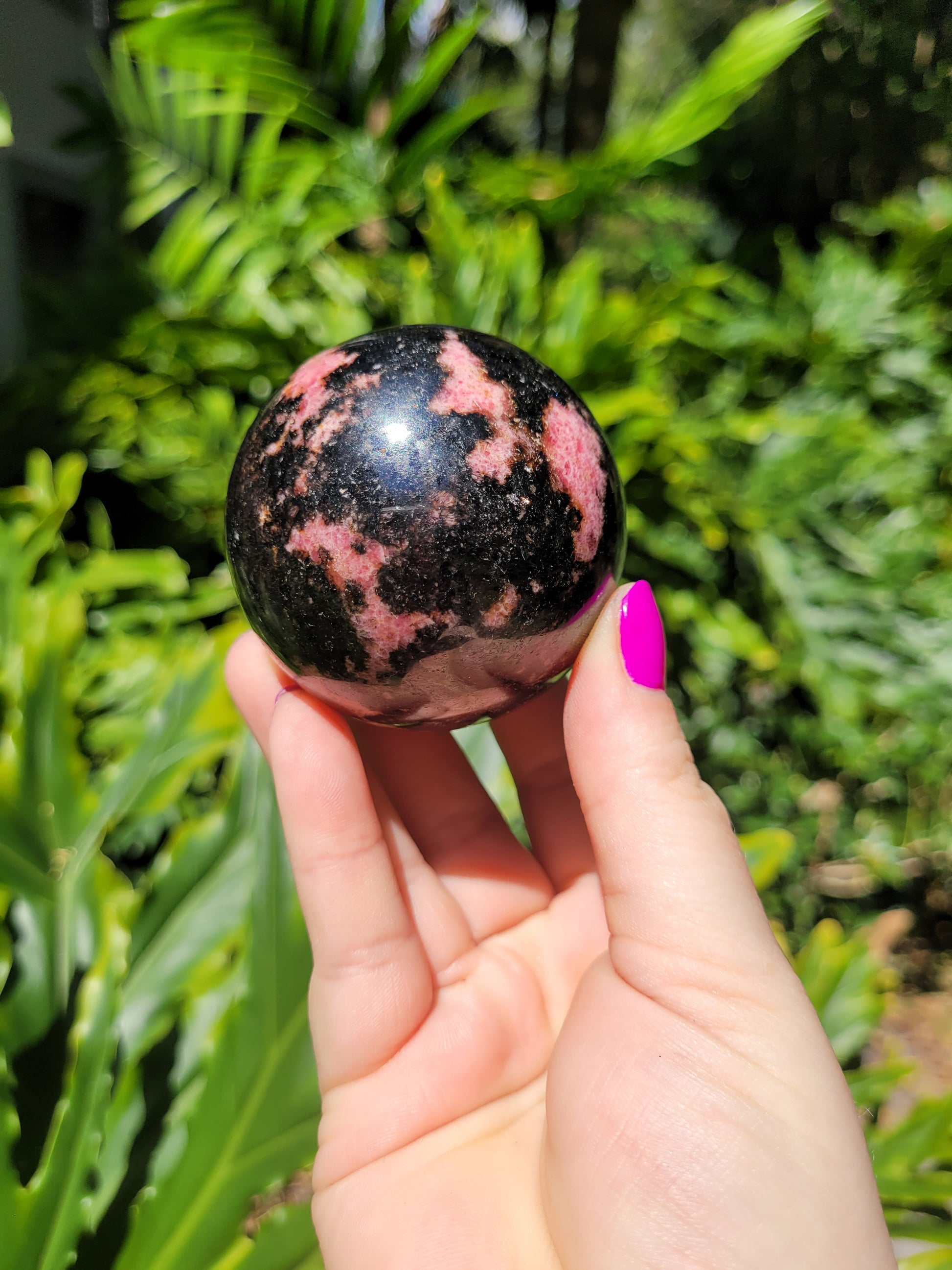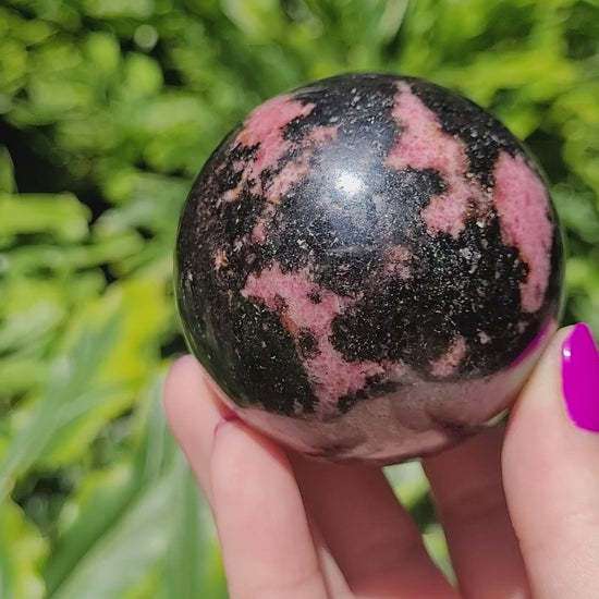 Whether you're working on heart chakra healing or just love its natural beauty, this Rhodonite Sphere is a meaningful addition to any crystal collection.