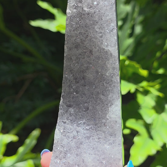 Half-raw druzy face with brilliant sparkle and quartz structure